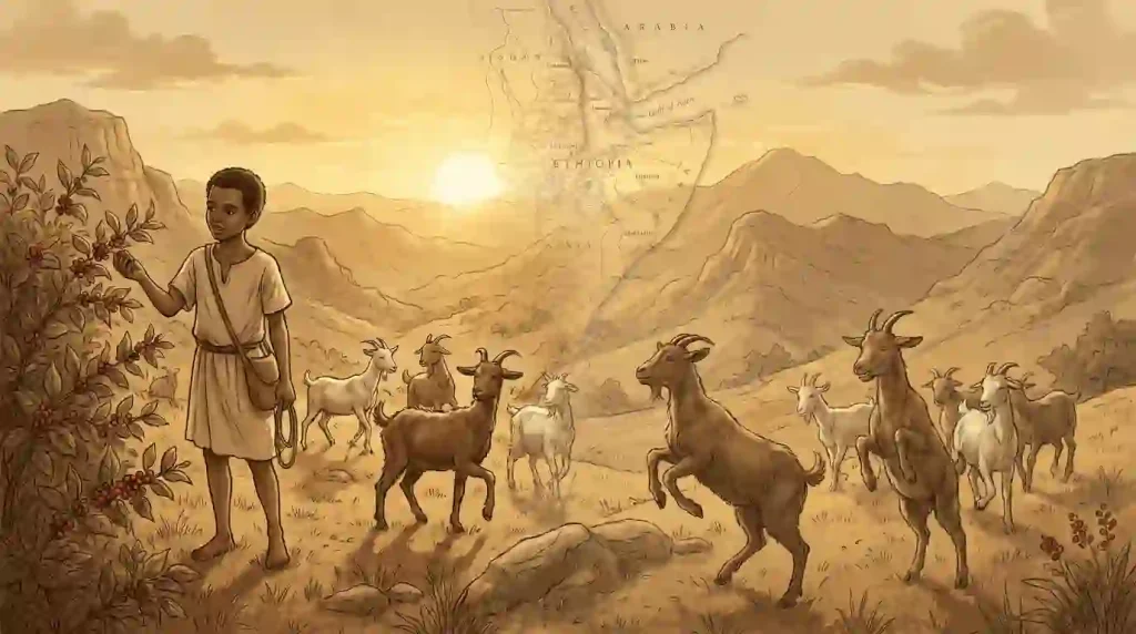 Kahvenin Hikayesi, bundan yüzyıllar önce, Afrika’nın yüksek dağlarında, bugünkü Etiyopya topraklarında genç bir keçi çobanı yaşardı. Adı Kaldi’ydi. Günlerini sürüsünü otlatarak, dağların serin rüzgârı eşliğinde geçirirdi. Bir gün, Kaldi keçilerinin alışılmadık şekilde hareketli olduğunu fark etti. Normalde gün batımına doğru sakinleşen hayvanlar, o gün adeta yerlerinde duramıyor, zıplıyor, birbirleriyle oynuyor ve gece boyunca enerjilerini kaybetmiyorlardı.